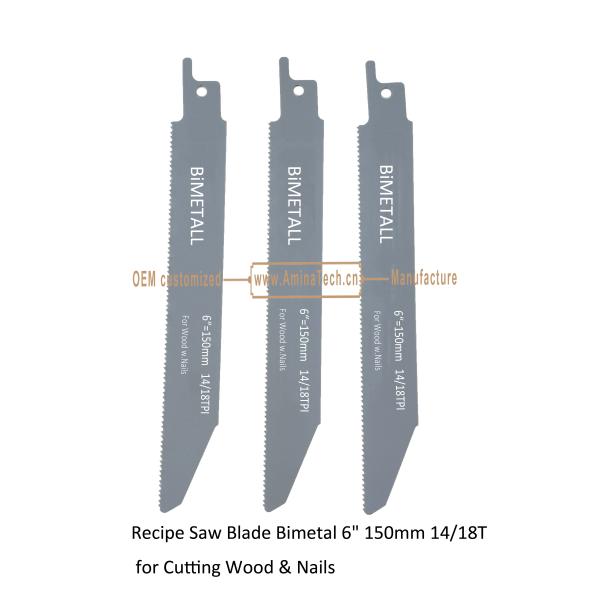Recipe Saw Blade Bimetal 6" 150mm 14/18T for Cutting Wood & Nails,Reciprocating ,Power Tools